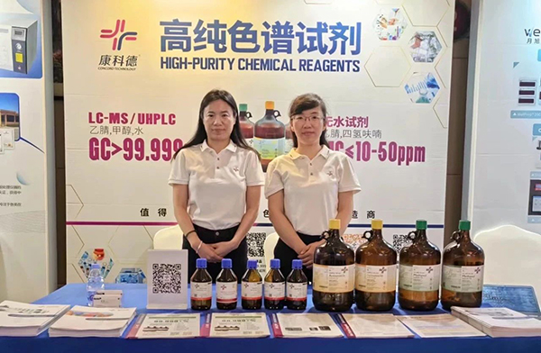 康科德在現(xiàn)場(chǎng)展示了液質(zhì)聯(lián)用級(jí)試劑、超純色譜級(jí)試劑、卡爾費(fèi)休試劑、色譜純?cè)噭┑认盗挟a(chǎn)品。憑借產(chǎn)品超高純度、超強(qiáng)穩(wěn)定性和客戶(hù)的良好口碑再次“出圈”,吸引多位專(zhuān)家老師駐足,掀起了一波又一波的咨詢(xún)熱潮。其中一位老師對(duì)康科德的超純色譜級(jí)試劑產(chǎn)生了濃厚的興趣,他表示近期正在尋找一家產(chǎn)品質(zhì)量穩(wěn)定的化學(xué)試劑生產(chǎn)企業(yè)來(lái)合作。在了解康科德試劑的特性和優(yōu)勢(shì)后,非常期待能夠與康科德合作。多位業(yè)界資深專(zhuān)家老師也紛紛對(duì)產(chǎn)品質(zhì)量和穩(wěn)定性表示認(rèn)可和肯定。通過(guò)此次產(chǎn)品展示與各項(xiàng)指標(biāo)講解,康科德收獲大量“粉絲”,為康科德在藥品檢測(cè)技術(shù)領(lǐng)域的發(fā)展奠定了堅(jiān)實(shí)基礎(chǔ)。