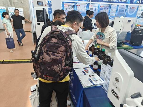 康科德公司此次參展的產(chǎn)品包括液質(zhì)聯(lián)用級試劑(LC-MS)、超純色譜級試劑(UHPLC)、無水溶劑以及專為高??蒲行枨蠖ㄖ聘鞣N規(guī)格高純?nèi)軇?。這些產(chǎn)品純度、穩(wěn)定的性能和廣泛的應(yīng)用場景,贏得了與會者的高度關(guān)注。展會期間,康科德的展位吸引了眾多高校教師、科研人員及實(shí)驗(yàn)室技術(shù)人員的駐足咨詢,工作人員與專家老師們就產(chǎn)品技術(shù)細(xì)節(jié)、應(yīng)用案例及解決方案進(jìn)行了深入探討,現(xiàn)場氣氛熱烈。