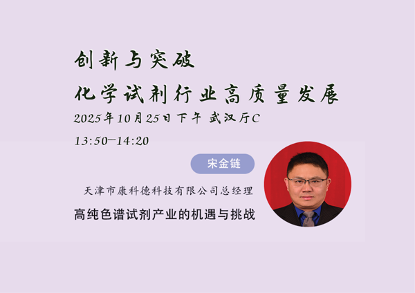 10月25日下午,“創(chuàng)新與突破—化學(xué)試劑行業(yè)高質(zhì)量發(fā)展”分會(huì)場(chǎng)將在武漢廳C舉行。分會(huì)場(chǎng)以“主題報(bào)告+高端對(duì)話”形式開(kāi)展,聚焦試劑生產(chǎn)、高純色譜、生物醫(yī)藥用試劑、功能性替代品及科研試劑生態(tài)構(gòu)建等關(guān)鍵領(lǐng)域,共同探討行業(yè)高質(zhì)量發(fā)展路徑。屆時(shí),康科德公司宋金鏈總經(jīng)理將發(fā)表題為《高純色譜試劑產(chǎn)業(yè)的機(jī)遇與挑戰(zhàn)》的專題報(bào)告,深入剖析當(dāng)前高純色譜試劑產(chǎn)業(yè)所面臨的發(fā)展機(jī)遇與關(guān)鍵挑戰(zhàn),分享公司在應(yīng)對(duì)行業(yè)痛點(diǎn)、推動(dòng)產(chǎn)業(yè)升級(jí)方面的實(shí)踐與思考,為與會(huì)者提供前瞻視角與解決方案。