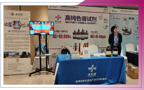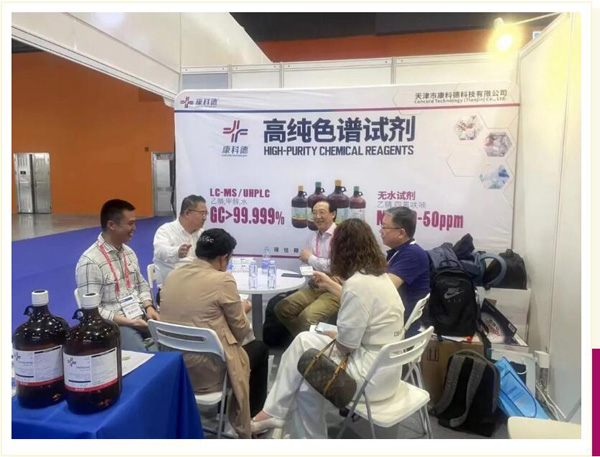 康科德團(tuán)隊由營銷總監(jiān)杜文玲和技術(shù)總監(jiān)劉巖帶隊,將康科德高純色譜試劑產(chǎn)品帶到現(xiàn)場進(jìn)行交流探討。