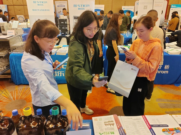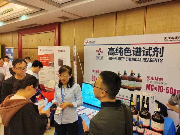 康科德展出的液質(zhì)聯(lián)用試劑、超純色譜試劑、色譜梯度試劑、卡爾費休試劑等系列產(chǎn)品引起廣泛關(guān)注,前來康科德展臺的老師絡(luò)繹不絕。工作人員通過產(chǎn)品的各項數(shù)據(jù)指標(biāo)和實際案例向大家展示出康科德產(chǎn)品檢測數(shù)據(jù)穩(wěn)定、超低雜質(zhì)、超低蒸發(fā)殘渣等優(yōu)勢。許多參會的專家老師對康科德的產(chǎn)品表現(xiàn)出濃厚的興趣,并表示出合作意向。